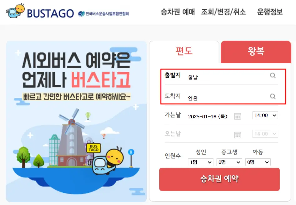 - 코버스(www.kobus.co.kr) 또는 티머니고(txbus.t-money.co.kr)에서 간편하게 온라인 예매가 가능하며, 원하는 좌석을 미리 선택할 수 있어 더욱 편리합니다.