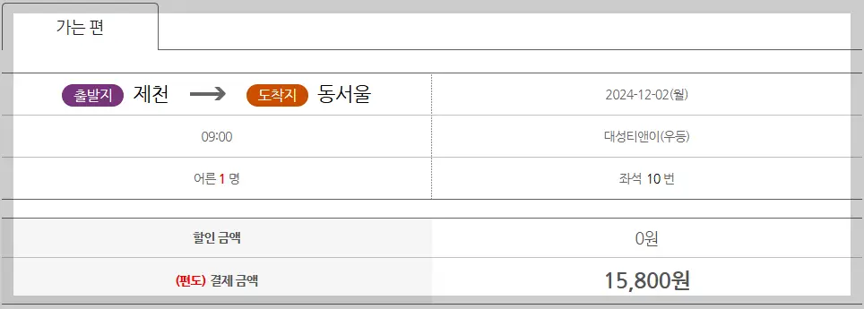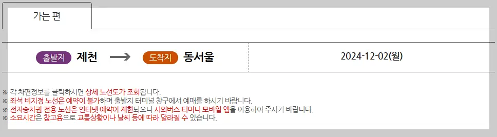 출발지에 ‘제천’, 도착지에는 원하는 지역을 입력하세요. 예: 제천 → 서울(동서울)
