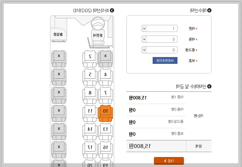 좌석 배치도를 보고 원하는 자리를 클릭해 선택합니다.