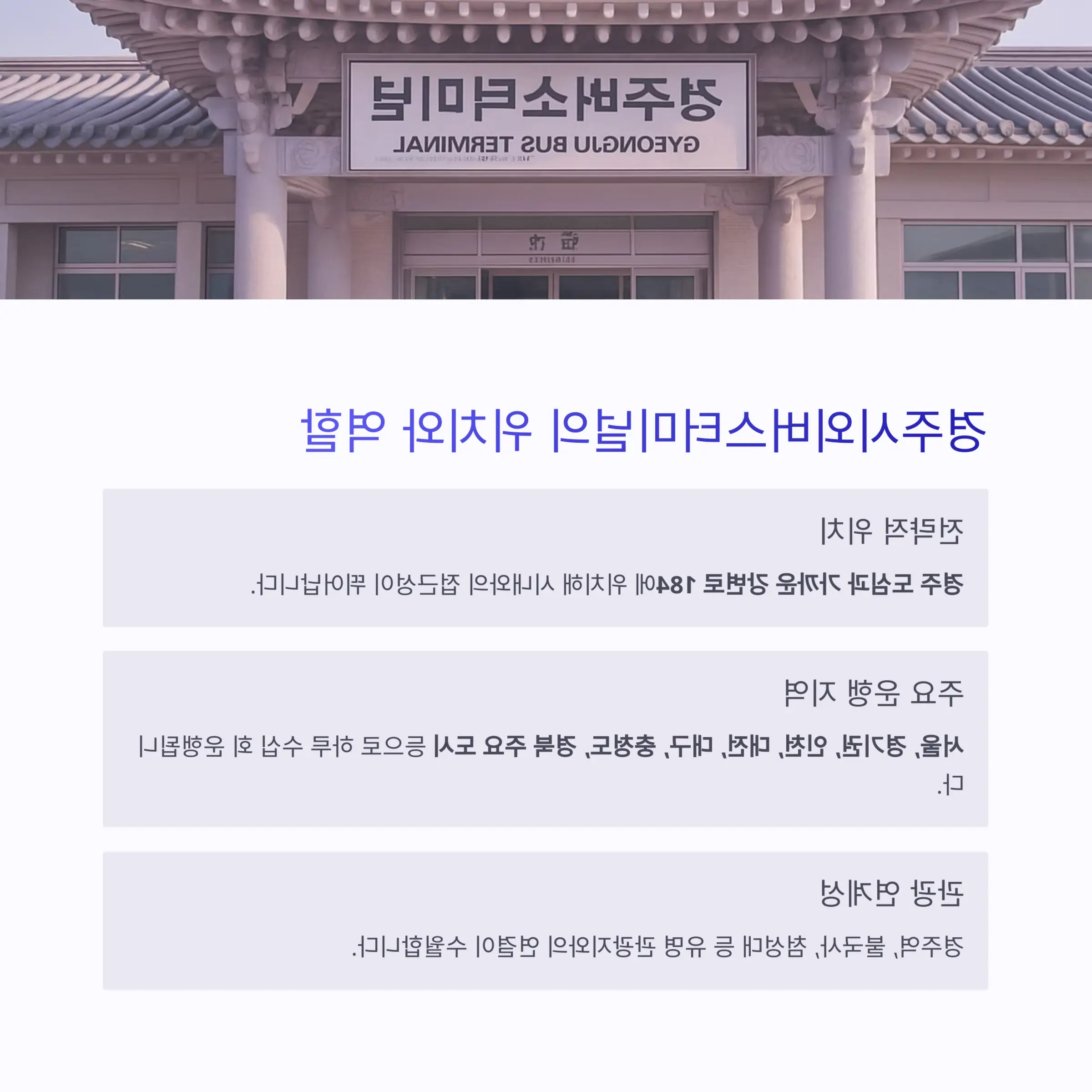 갑작스러운 일정에도 당황하지 않고 빠르게 시간표를 확인하고 예매할 수 있다면 더 편리하고 여유로운 여행을 즐길 수 있겠죠? 아래에서 경주시외버스터미널 시간표 조회 방법, 예매 절차, 주요 노선, 주차 정보, 주변 맛집까지 한 번에 알려드릴게요!