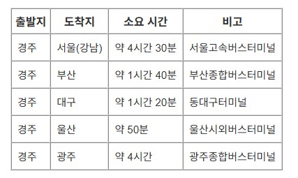 출발지에 ‘경주’, 도착지에 원하는 지역을 입력하세요. 예: 경주 → 서울(강남)