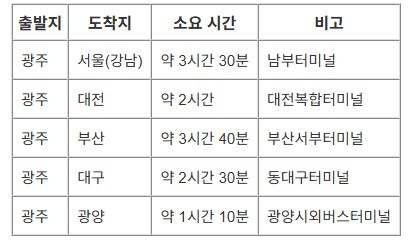 광주시외버스터미널 시간표 조회