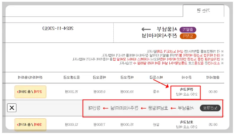 시간표 조회 후 바로 예매까지 진행하면 터미널에서 줄서지 않고 바로 탑승할 수 있어요.
