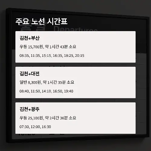 김천시외버스터미널 시간표, 빠르게 확인하는 방법을 소개해 드릴게요. 경북 내륙에 위치한 김천은 KTX 김천(구미)역과 함께 시외버스 교통도 활발한 도시입니다. 특히 김천시외버스터미널은 서울, 대전, 대구, 부산 등 주요 도시와 연결되는 노선이 잘 정비되어 있어 이동이 편리해요.