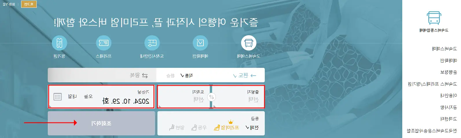 탑승일과 인원을 선택하고 조회 버튼을 클릭하세요.