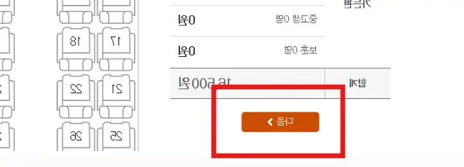 잔여 좌석을 확인 후 원하는 자리를 지정합니다.