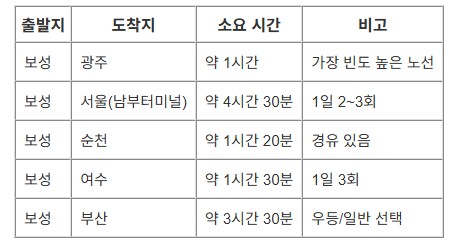 보성시외버스터미널 주요 버스 노선