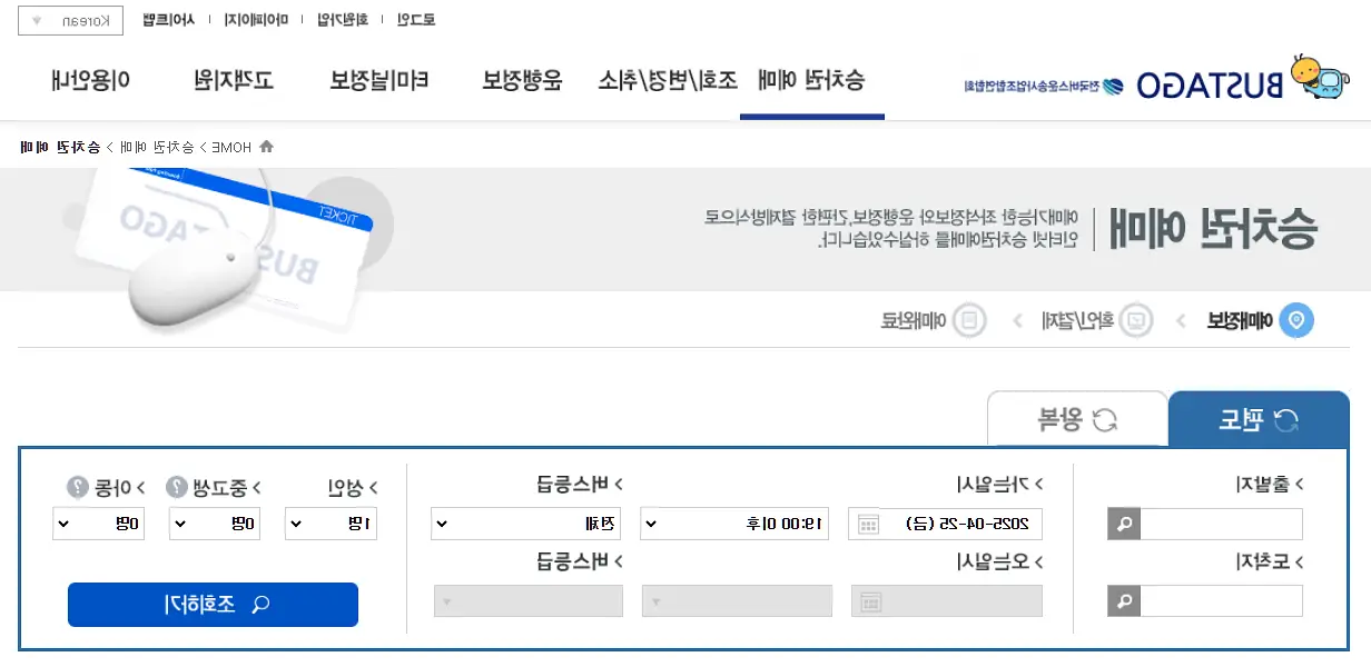 출발지에 ‘보성’, 도착지에 원하는 지역 입력 (예: 보성 → 광주)