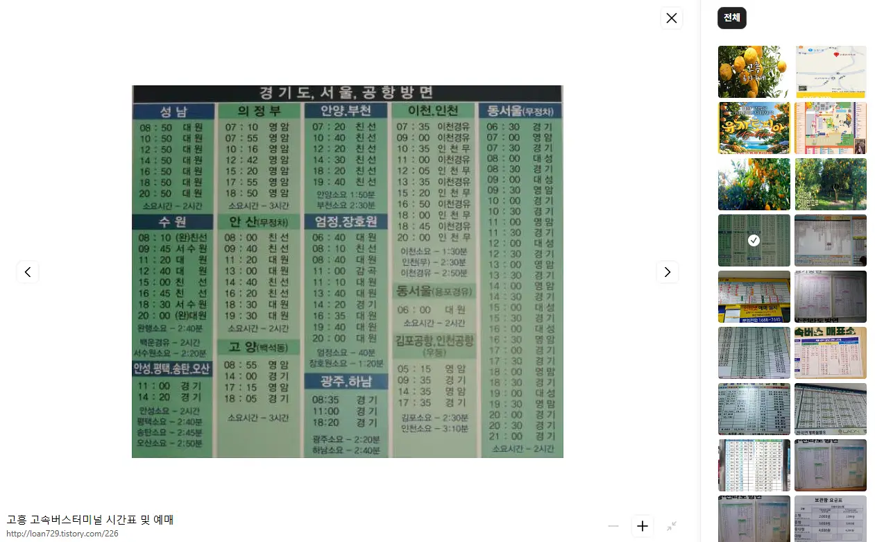보성시외버스터미널 시간표 조회