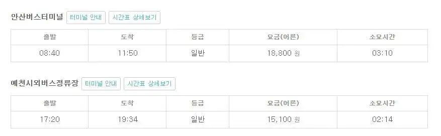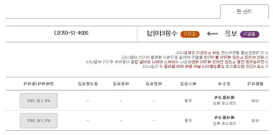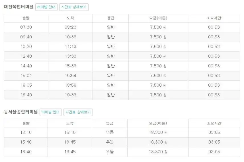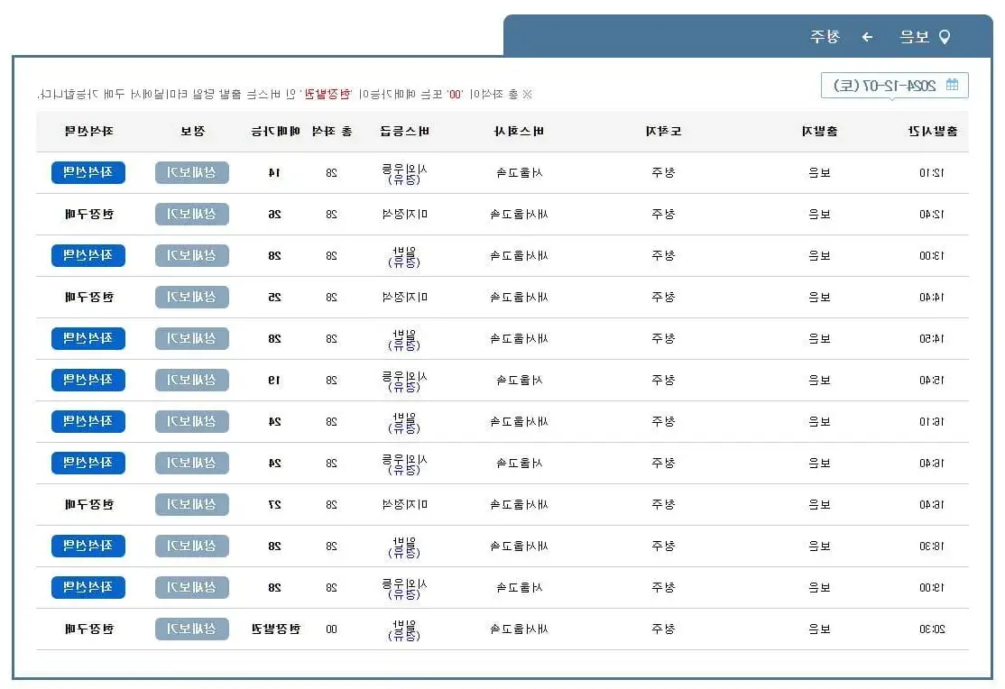 운행 시간, 요금, 잔여 좌석 등 실시간 정보 확인이 가능합니다.