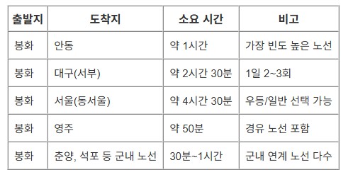 출발지에 ‘봉화’, 도착지에 원하는 지역 입력 (예: 봉화 → 안동)