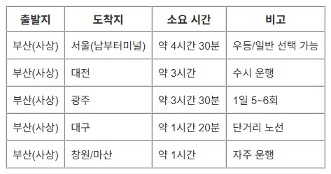 출발지에 ‘부산(사상)’, 도착지에 목적지를 입력하세요. (예: 부산(사상) → 서울)
