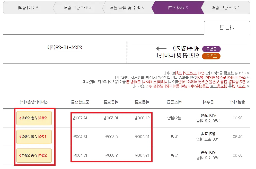 조회한 목록에서 원하는 시간대를 선택합니다.