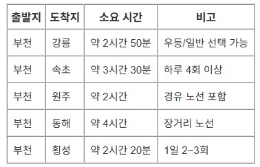 부천은 수도권 서부의 출발지로, 강원 동해안 지역 관광 수요가 많기 때문입니다.