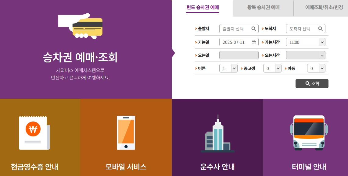 출발 시간, 요금, 잔여 좌석 등을 실시간으로 확인할 수 있습니다.