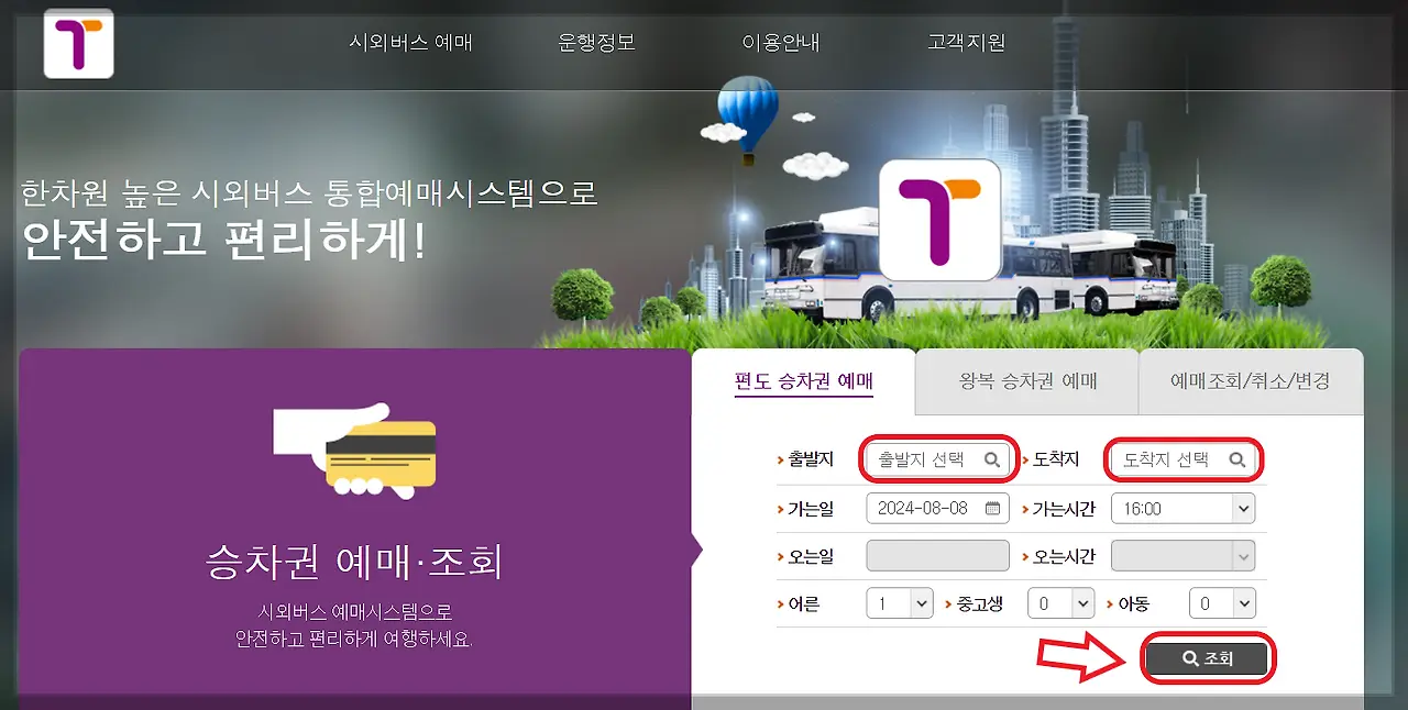 출발 전까지 티머니시외버스 홈페이지에서 취소 또는 변경 가능합니다.
