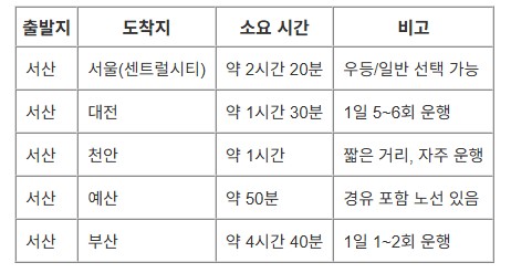 출발지에 ‘서산’, 도착지에 목적지를 입력하세요. 예: 서산 → 서울