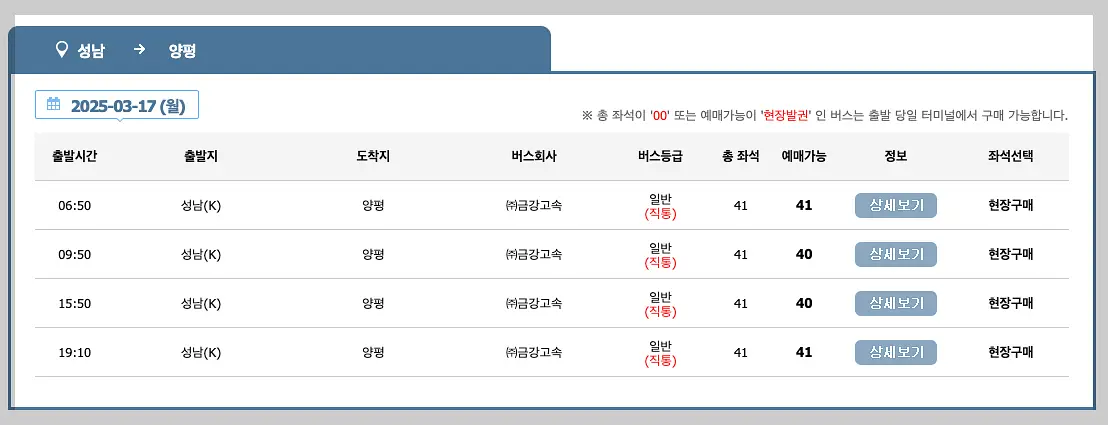 성남시외버스터미널 시간표 조회