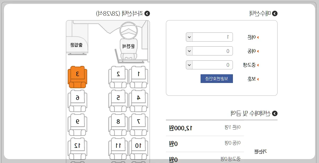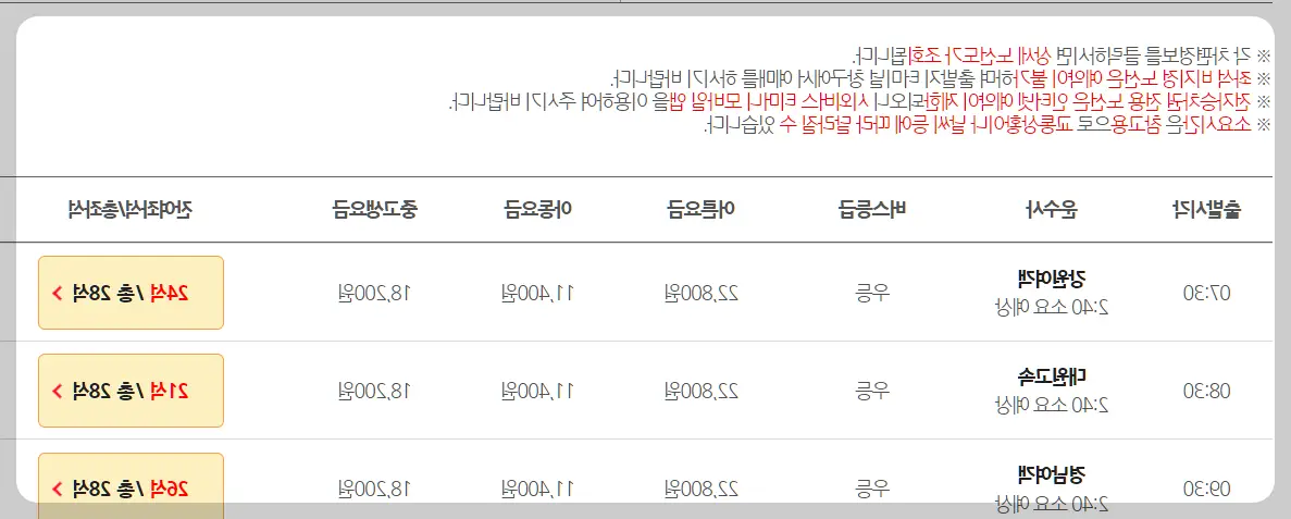 원하는 시간대의 버스를 선택합니다.