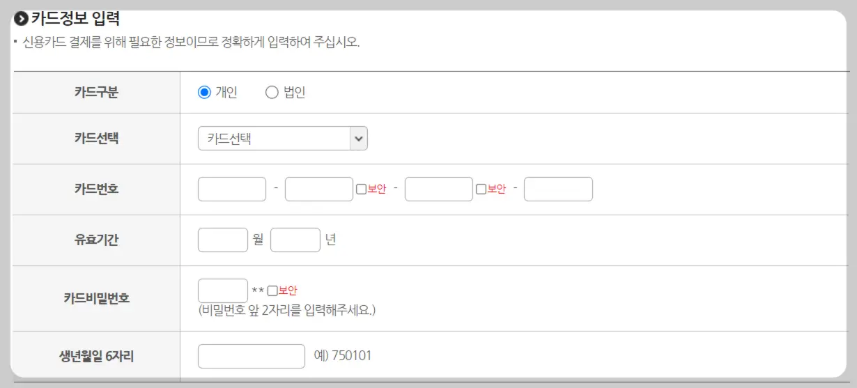 신용카드, 간편결제(카카오페이, 토스 등)로 손쉽게 결제할 수 있어요.