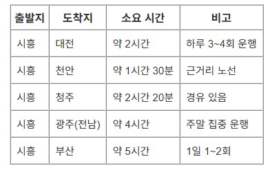 아래에서 시흥시외버스터미널 시간표 조회, 예매 방법, 주요 노선, 주차 정보, 주변 맛집까지 정리해드릴게요!