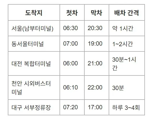 서울행은 하루 10회 이상 운행되며, 출퇴근 시간대에는 더욱 자주 운행돼요.