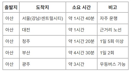 출발지에 ‘아산’, 도착지에 원하는 지역을 입력하세요. 예: 아산 → 서울