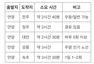 출발지에 ‘안양’, 도착지에 원하는 지역을 입력하세요. 예: 안양 → 전주