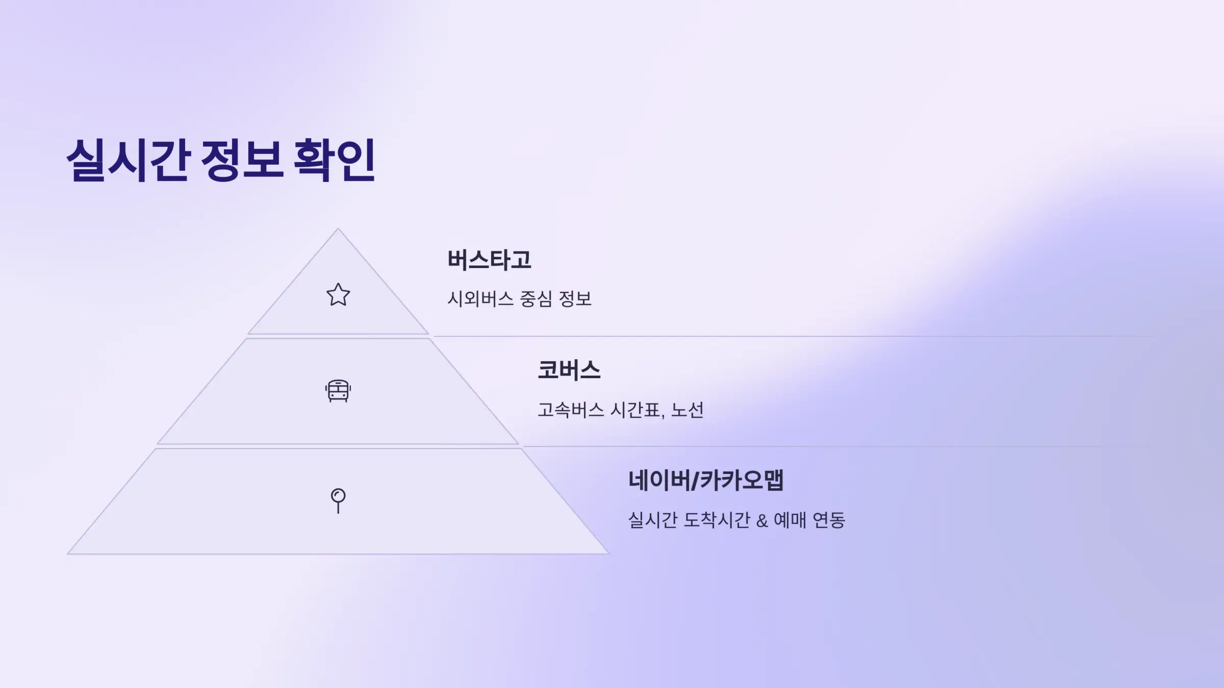실시간으로 출발 시간, 잔여 좌석, 요금, 소요 시간 등을 확인할 수 있어요.