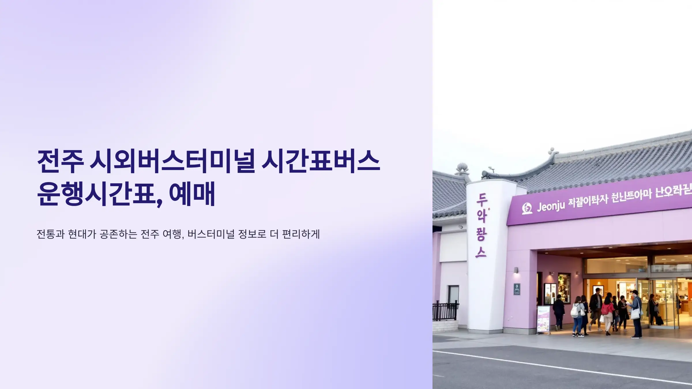 전주시외버스터미널 시간표, 빠르게 확인하는 방법을 소개해 드릴게요. 전주는 전통과 현대가 어우러진 도시로, 한옥마을, 풍남문, 전주비빔밥 등으로 잘 알려져 있습니다. 서울, 대전, 광주, 부산 등 전국 주요 도시와 연결된 시외버스 노선이 잘 갖춰져 있어 교통의 중심지로도 손꼽혀요.