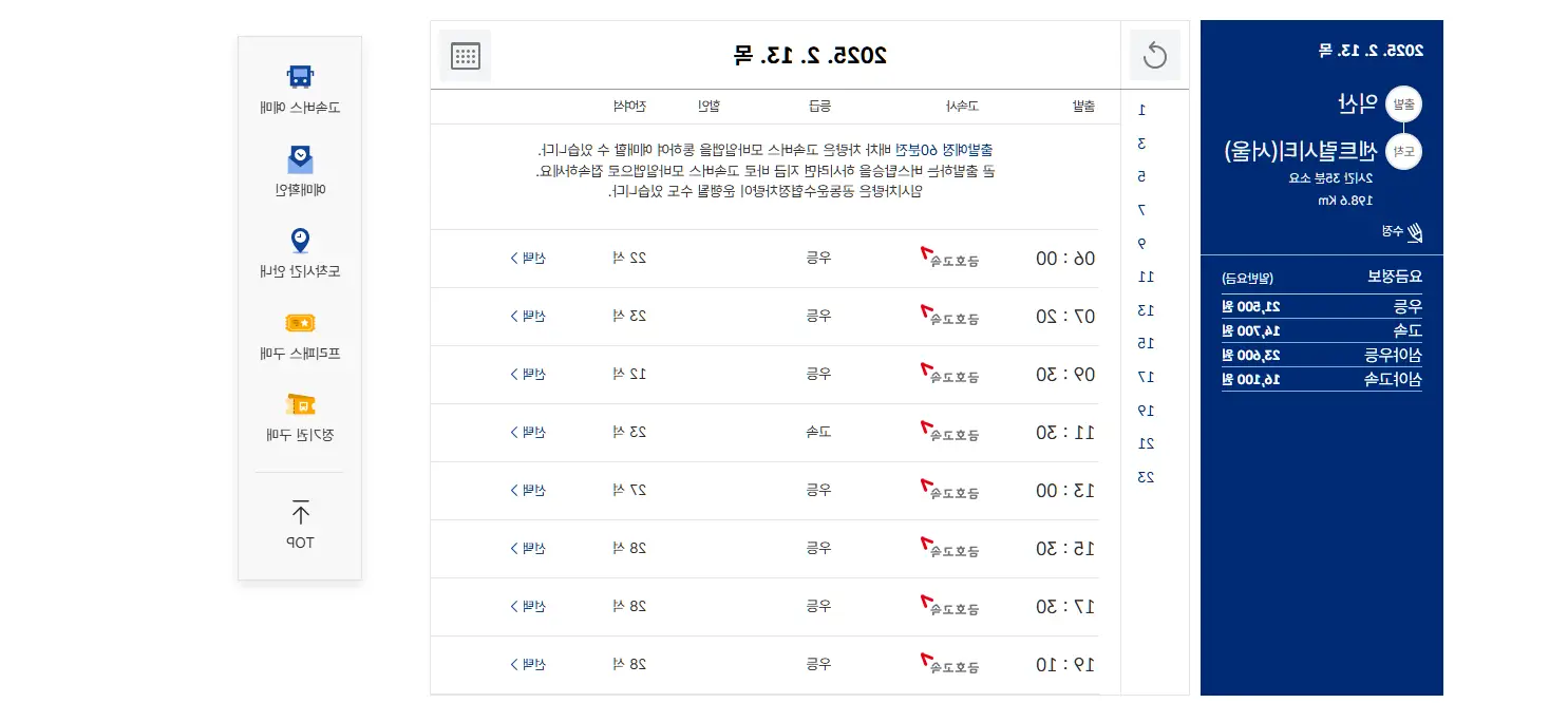 운행 시간, 소요 시간, 요금, 잔여 좌석 등을 실시간으로 확인할 수 있어요.