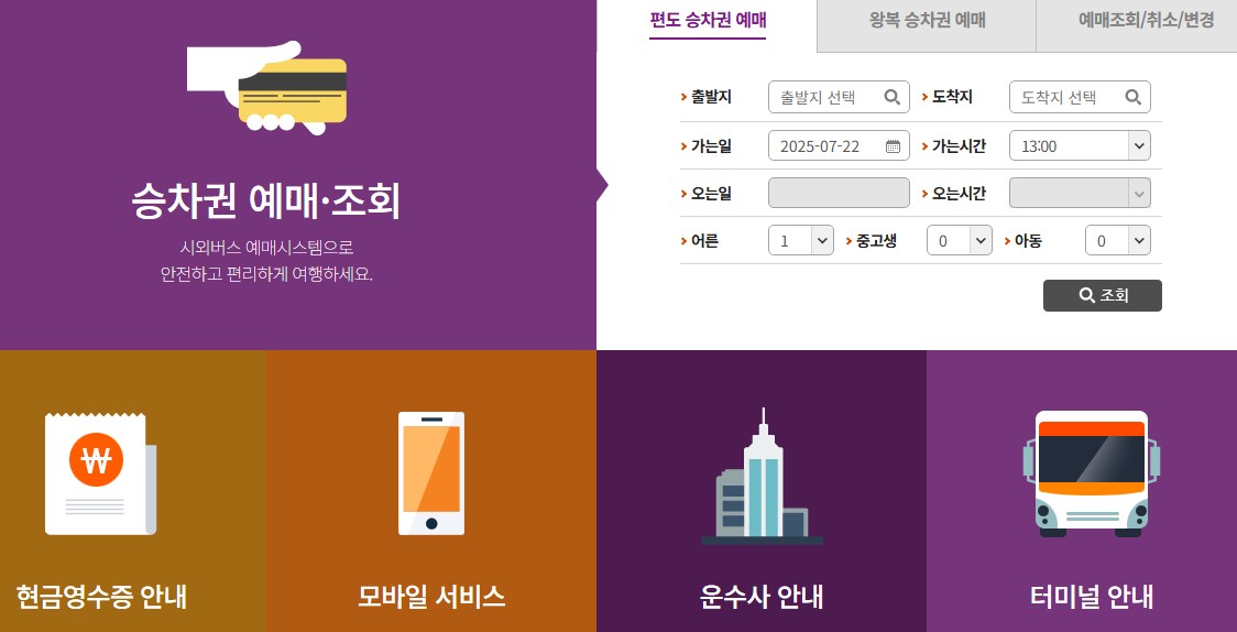 운행 시간, 소요 시간, 요금, 잔여 좌석을 실시간으로 확인할 수 있어요.