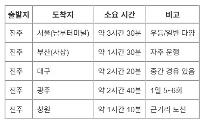 출발지에 ‘진주’, 도착지에 원하는 목적지를 입력하세요. 예: 진주 → 서울