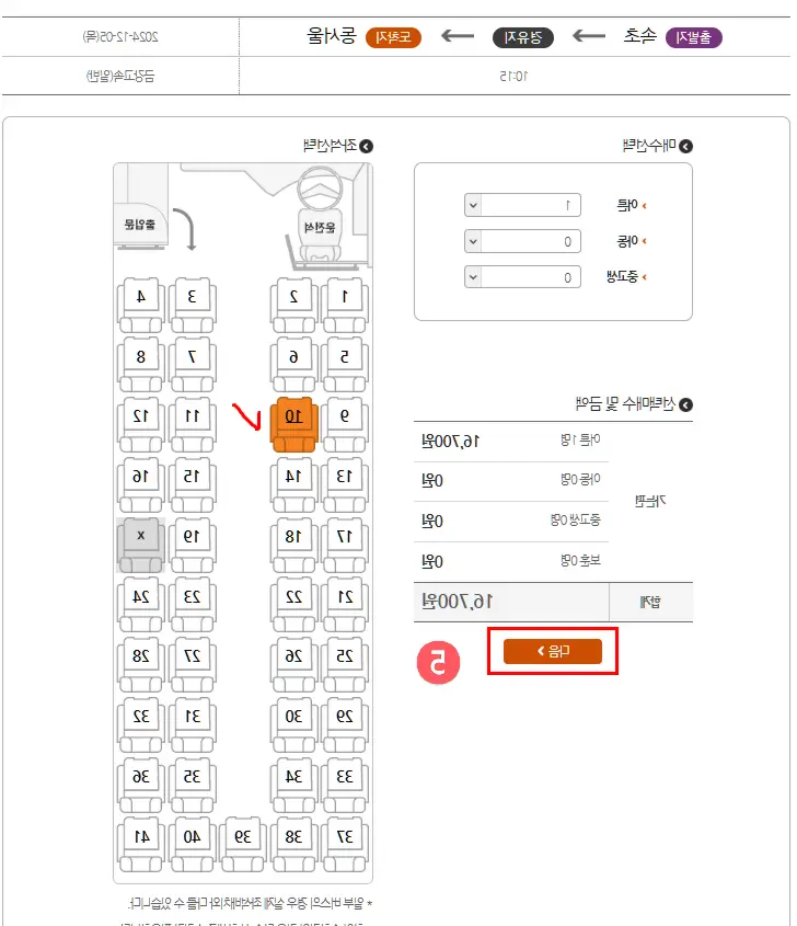 잔여 좌석 중에서 원하는 좌석을 클릭하세요.
