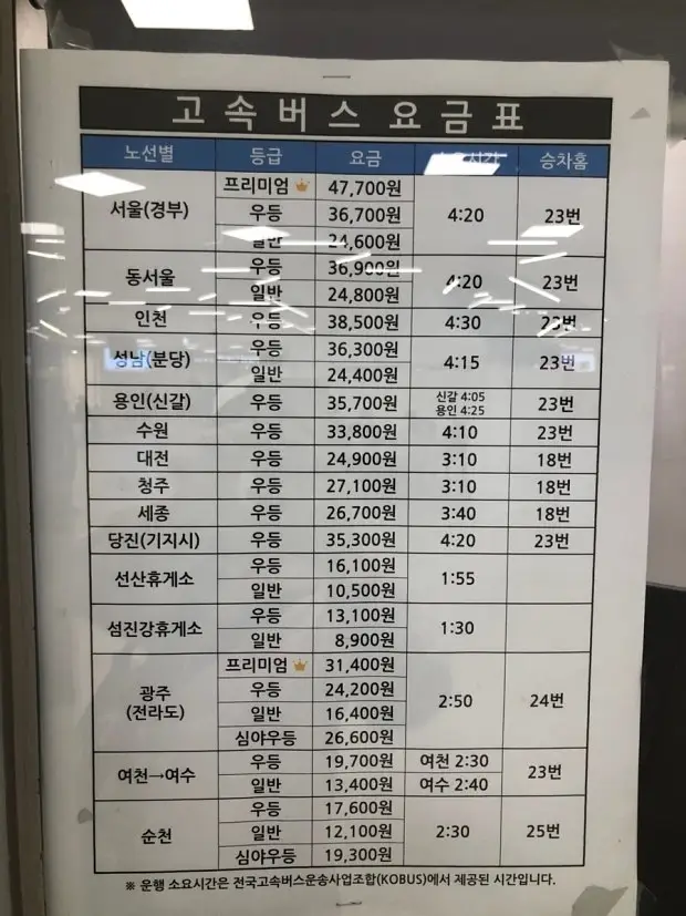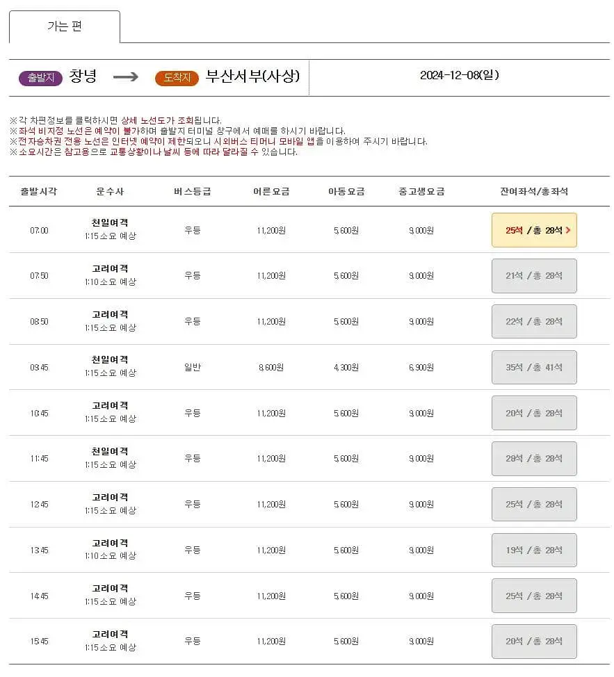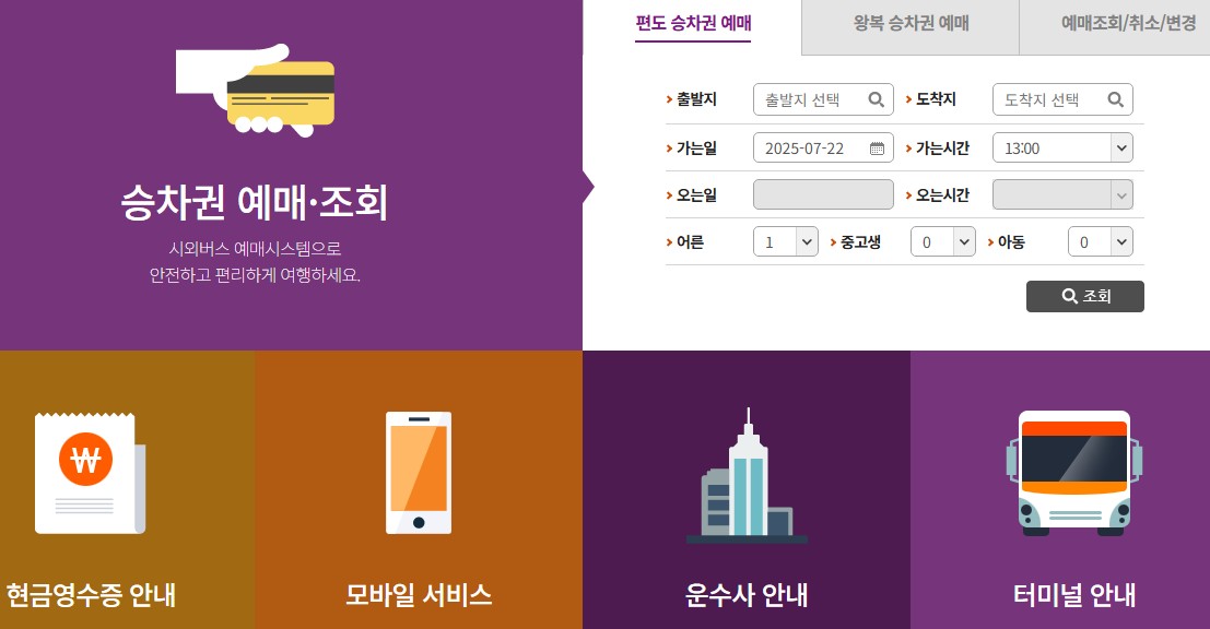 운행 시간, 소요 시간, 요금, 잔여 좌석 등을 실시간으로 확인할 수 있어요.