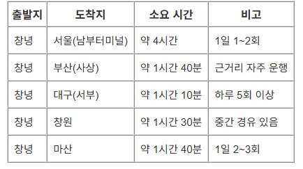 출발지에 ‘창녕’, 도착지에 원하는 목적지를 입력하세요. 예: 창녕 → 부산