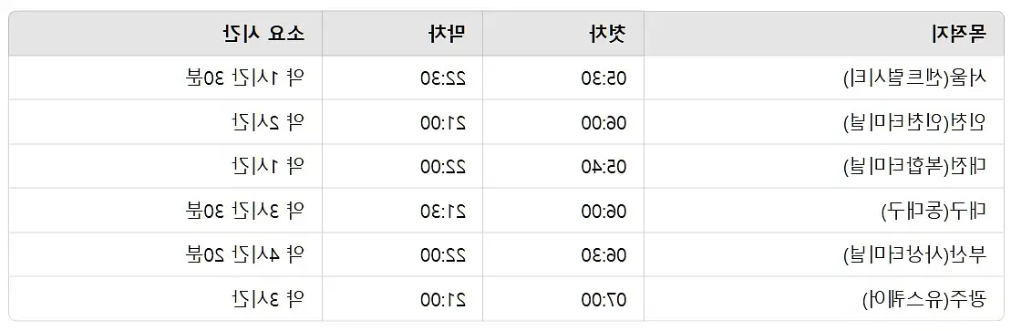 출발 전 정확한 시간표 확인은 필수입니다.
