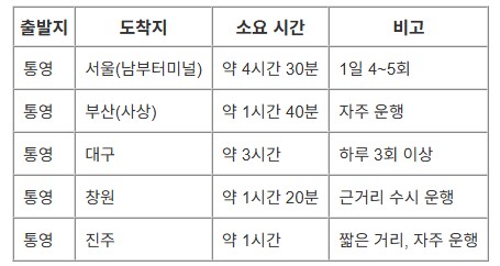 출발지에 ‘통영’, 도착지에 원하는 목적지를 입력하세요. 예: 통영 → 서울