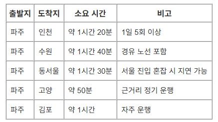 출발지에 ‘파주’, 도착지에 원하는 목적지를 입력하세요. 예: 파주 → 인천