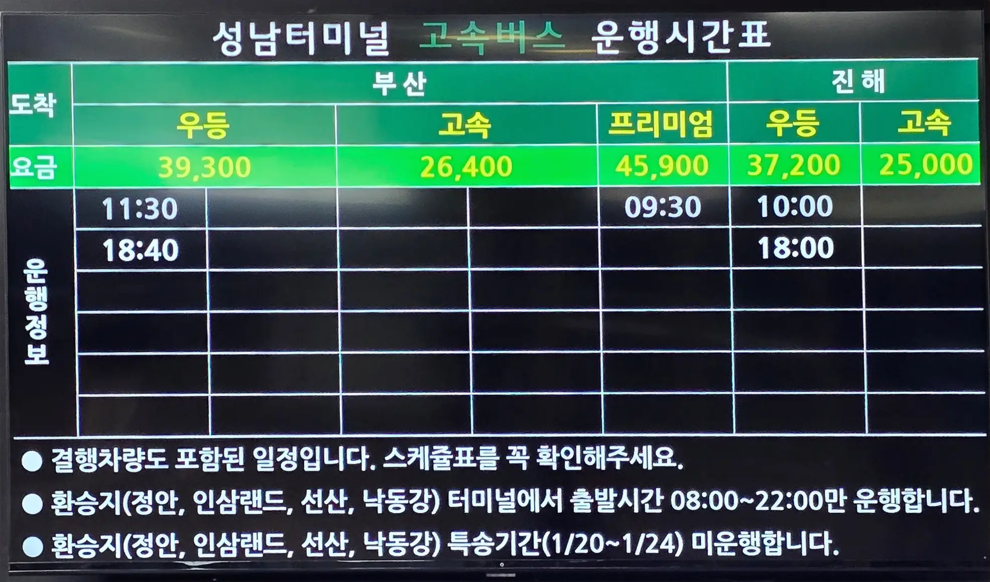 - 운영: 터미널 내 공영주차장 / 24시간 운영