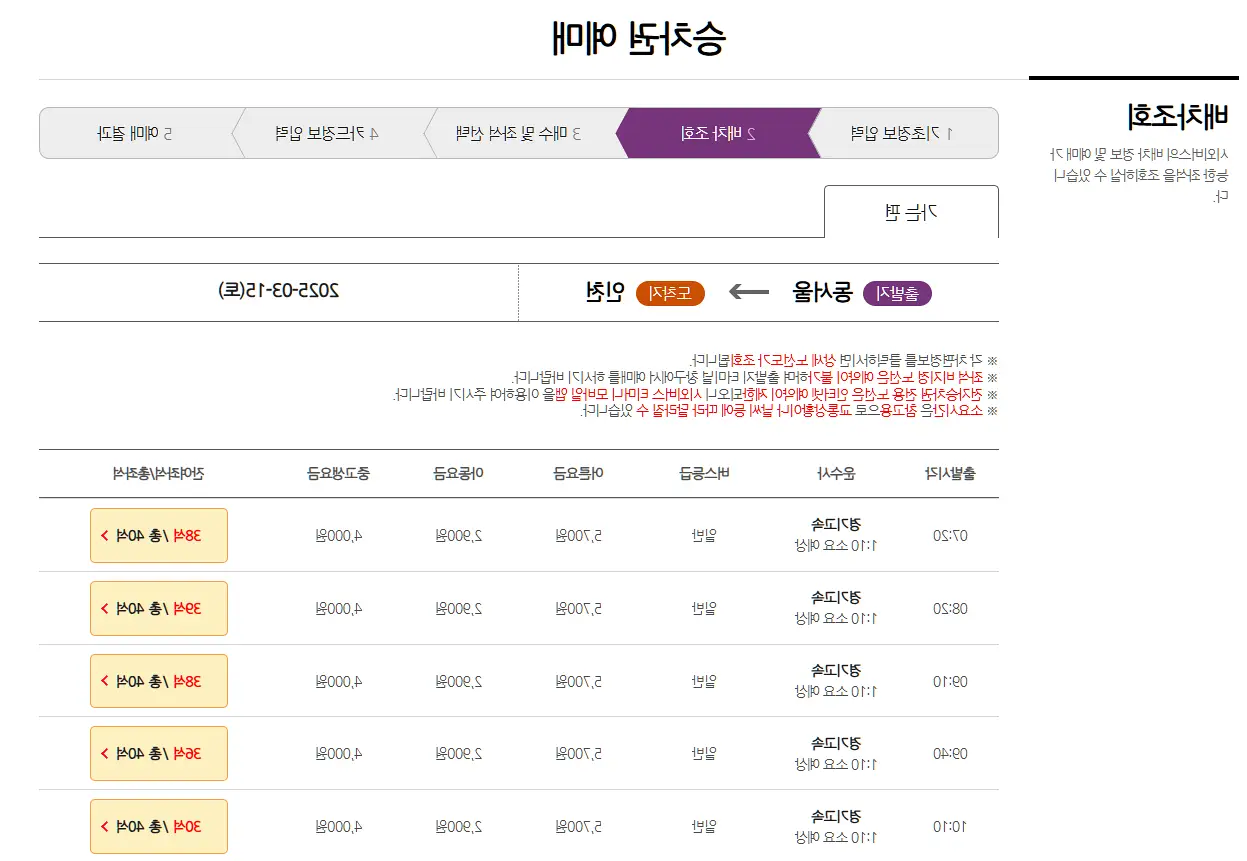원하는 시간대의 버스를 선택하세요.