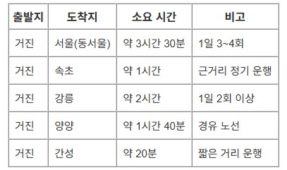 출발지에 ‘거진’, 도착지에 원하는 목적지를 입력하세요. 예: 거진 → 서울