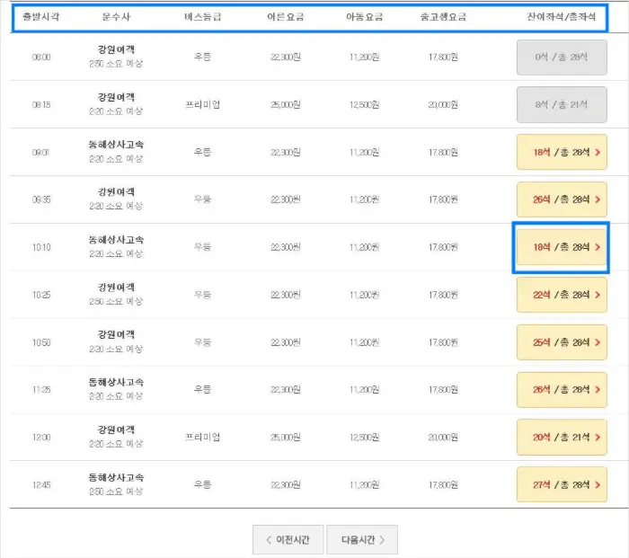 운행 시간, 잔여 좌석, 요금 등을 실시간으로 확인할 수 있어요.