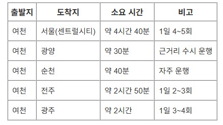 출발지에 ‘여천’, 도착지에 원하는 목적지를 입력하세요. 예: 여천 → 서울