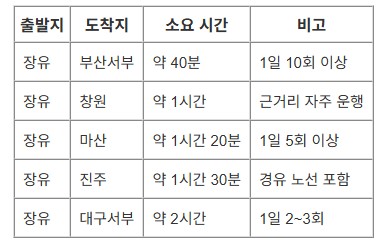 출발지에 ‘장유’, 도착지에 목적지를 입력하세요. 예: 장유 → 대구