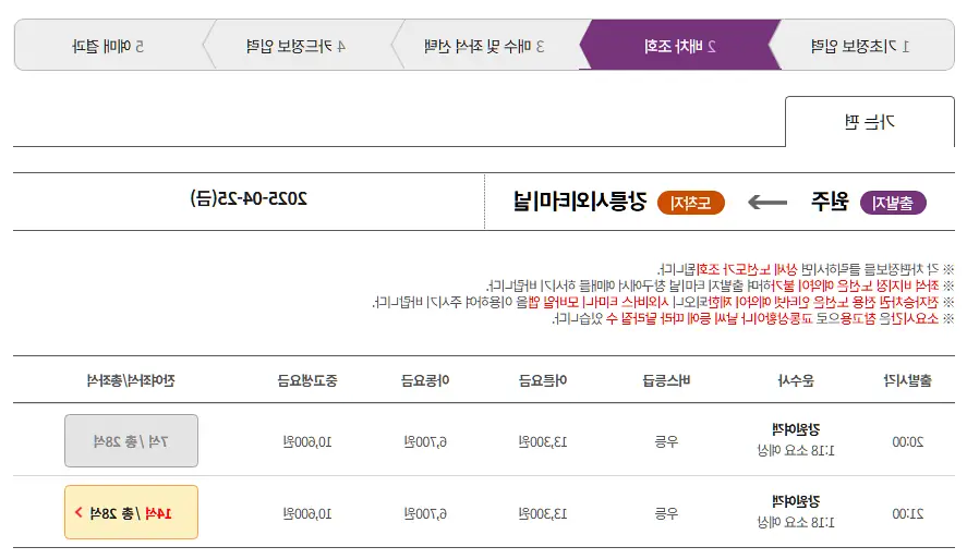 탑승일과 인원을 선택하고 ‘조회’ 버튼을 눌러주세요.