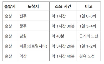 출발지에 ‘순창’, 도착지에 원하는 목적지를 입력하세요. 예: 순창 → 전주