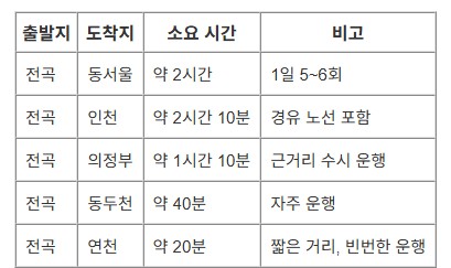 출발지에 ‘전곡’, 도착지에 원하는 목적지를 입력하세요. 예: 전곡 → 동서울
