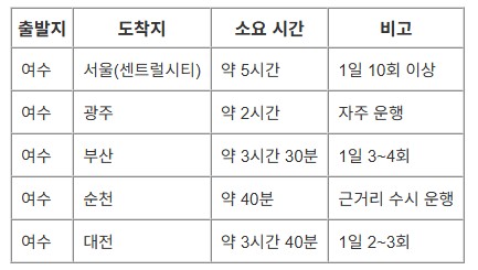 출발지에 ‘여수’, 도착지에 원하는 목적지를 입력하세요. 예: 여수 → 서울