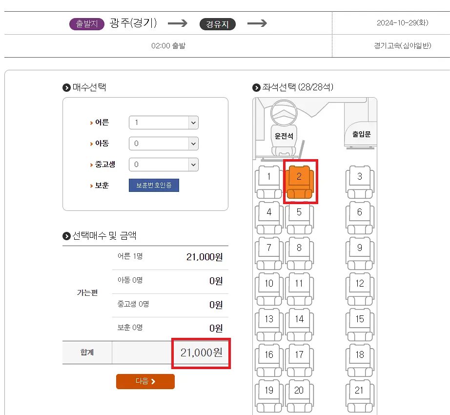운행 시간, 요금, 잔여 좌석 등을 실시간으로 확인할 수 있어요.